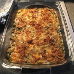 2Place green beans and soup in a large microwave-safe bowl. Mix well and heat in the microwave on HIGH until warm (3 to 5 minutes). Stir in 1/2 cup of cheese and heat mixture for another 2 to 3 minutes. Transfer green bean mixture to a casserole dish and sprinkle with French fried onions and remaining cheese.