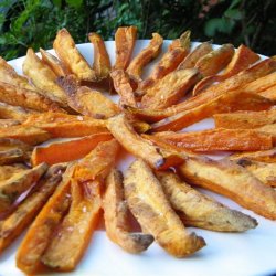 In a large bowl, mix olive oil and paprika. Add potato sticks, and stir by hand to coat. Place on the prepared baking sheet.