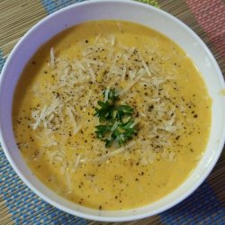 2In a blender or food processor, combine cooked carrots and 3/4 cup broth. Blend until smooth. Set aside.
