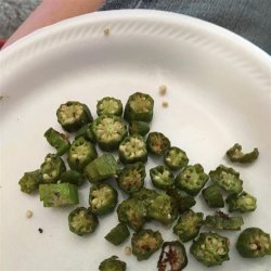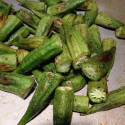 "As a good Southern gardener, I find myself bringing in okra by the armload nearly every other day. Stewed okra is great, but for a little variety, we like to roast ours from time to time. This is so simple and easy and the okra tends to not be nearly as gummy or slimy when roasted. Chopped tomato makes a great addition when we have some handy."