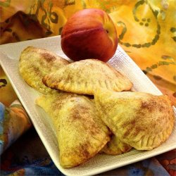 2Roll pie pastry onto a cutting board. Cut crust into eight 4-inch circles using a cookie cutter. Place 1 peach slice in the center of each circle. Fold circle in half to enclose each peach slice; seal edges together. Place mini pies on a baking sheet.