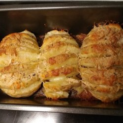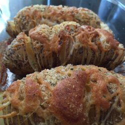 4Bake for 35 to 40 minutes in the preheated oven. Remove from the oven, and drizzle with the remaining butter. Sprinkle Romano cheese and bread crumbs onto the tops of the potatoes, and season with a little more salt and pepper. Return to the oven, and bake for an additional 20 minutes, or until nicely browned.