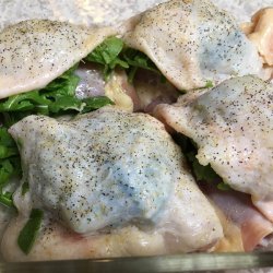 "Arugula was on sale and I wanted to find new ways to use it. This became a quick favorite. I've found that there's no need to preheat the oven; a little longer cooking time produces a juicy thigh with crispy skin."