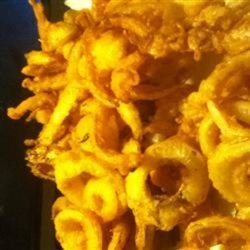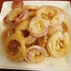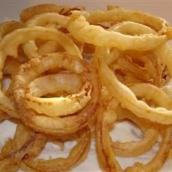 "These are very delicate and the best I have had. My ex was a fanatic when it came to onion rings, and thought this recipe to be the best he ever had. Have also made other veggies in this batter. Can be refrigerated or frozen, then reheated in oven or microwave. Carbonated water can be substituted for beer in this recipe."