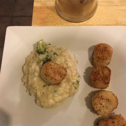 2Cook and stir until the wine has mostly evaporated, then stir in one third of the chicken broth; continue stirring until incorporated. Repeat this process twice more, stirring constantly. Stirring in the broth should take 15 to 20 minutes in all. Stir in the cream, and cook 5 minutes before stirring in the broccoli, chives, Parmesan cheese, and Asiago cheese. Cook and stir until the risotto is hot; season to taste with salt and pepper before serving.