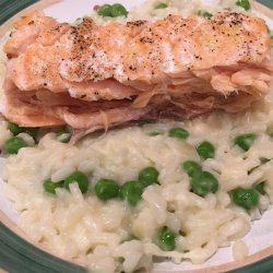 1Heat the olive oil and butter in a large, heavy-bottomed saucepan over medium-high heat. Add the onion and garlic; cook and stir until the onion begins to turn golden brown at the edges, about 2 minutes. Pour in the rice, and stir until the rice is coated in oil and has started to toast, 3 to 4 minutes. Reduce the heat to medium and stir in the white wine and lemon juice.