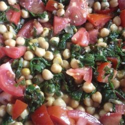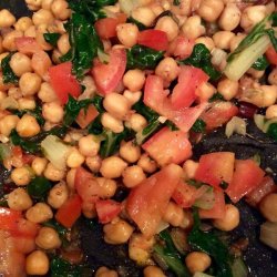 "Beans and greens are a perfect combination, earthy and satisfying. This recipe for Swiss chard with garbanzo beans, onion, and fresh tomatoes is brightened with lemon juice and makes a perfect vegetarian main dish or a tantalizing side dish for fish or meat."