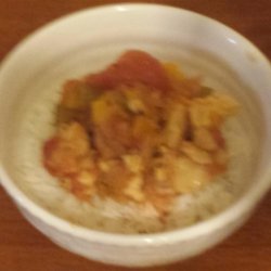 To the chicken add the tomatoes, with juice, remaining water, garlic powder, onion powder and chili powder. Simmer 5 minutes.