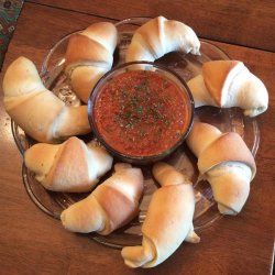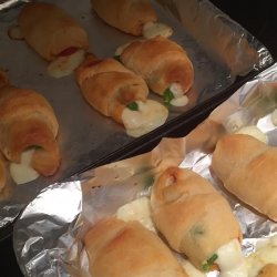 2Unroll crescents onto work surface. Top each piece of dough with shredded cheese and a few slices of pepperoni. Sprinkle on a bit more cheese, and roll into crescent shape. Place pizza "moons" on a baking sheet.