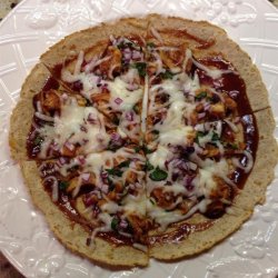 3Mix 1 tablespoon barbeque sauce and chicken in a bowl until coated. Spread chicken mixture, half the red onion, and half the cilantro onto the tortilla. Sprinkle mozzarella cheese over chicken mixture. Top with remaining red onion and cilantro. Place pizza on a baking sheet.