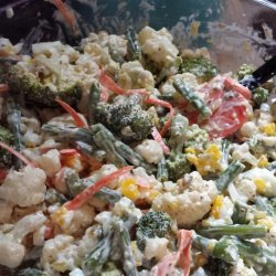 "This cauliflower salad combines hard-boiled eggs, shaved carrots, and green onions with a creamy dressing for a side dish for any occasion."
