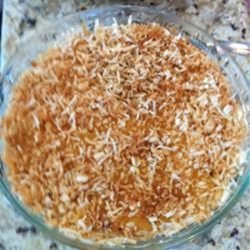 4Before serving, mix 1/2 cup coconut with butter and brown sugar. Sprinkle on top of pie. Broil, about 3 or 4 inches away from heat, for 2 to 4 minutes.