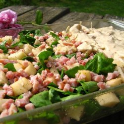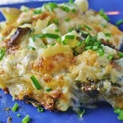 "A creamy cheesy au gratin potato dish with added spinach and caramelized onion goodness."