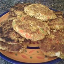 "This is a special recipe for me. My first veggie burger from scratch! It is low cal, great tasting and easy. I make a bowl of this mix and leave it in the fridge so my husband can pat out a burger and quickly cook it on his lunch break. Enjoy:)"