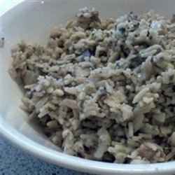 1Place a large skillet over medium-low heat. Melt butter, then saute rice, orzo, mushrooms, onion, and celery. Stir constantly until rice is lightly browned.