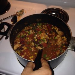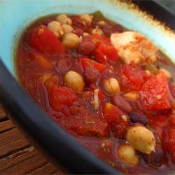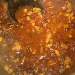 3Add the black beans, great Northern beans, tomatoes with green chiles, tomato sauce, chicken stock, brown sugar, corn, vinegar, chili powder, cumin, cilantro, salt, and cayenne pepper to the slow cooker. Cook on High until the beans are tender, 3 to 4 hours. Stir the diced green, red, and yellow bell peppers into the chili and cook another 20 minutes.