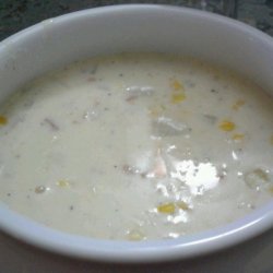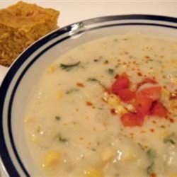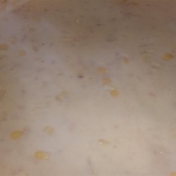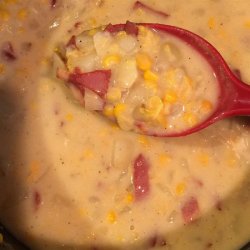 2Mix potatoes and onion into the pot with the crumbled bacon and reserved drippings. Cook and stir 5 minutes. Pour in the water, and stir in corn. Season with salt and pepper. Bring to a boil, reduce heat to low, and cover pot. Simmer 20 minutes, stirring frequently, until potatoes are tender.