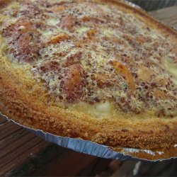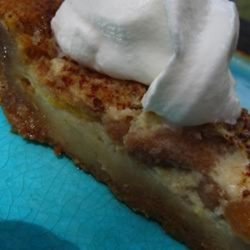 3Arrange peach slices in bottom of pastry-lined pie pan. Pour custard mixture over peaches.