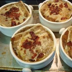"This is the best French onion soup you'll ever taste! I've added bacon and use Gruyere cheese for a unique boost of flavor. This one's a meal in itself."