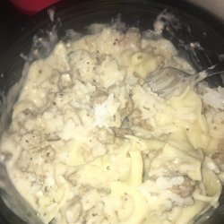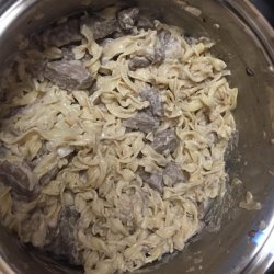 3When noodles are almost done cooking, stir sour cream into meat mixture. Pour meat mixture over hot cooked noodles and serve.