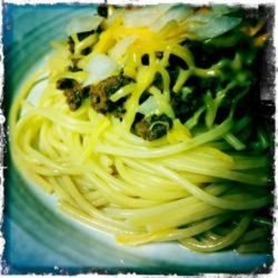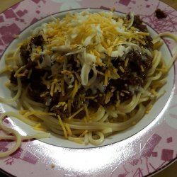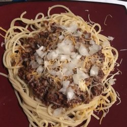 5Remove the bay leaf. Reheat gently over medium heat. Serve over hot, drained spaghetti. Top with shredded cheddar cheese.