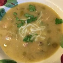 1Heat the oil in a large pot over medium heat. Add the onions and garlic and saute for 10 minutes, or until onions are tender. Add the chicken, chicken broth, green chile peppers, cumin, oregano and cayenne pepper and bring to a boil.