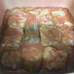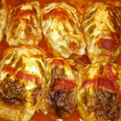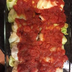 3Combine the beef, egg, onion, rice, salt and pepper. Mix together well. Take a small handful and form into a small roll or ball. Place into the center of a cabbage leaf. Fold the sides of the leaf over and roll the ball up into the leaf. Place seam side down in baking dish. Continue until all of the filling is used up.