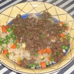 2Heat the oil in a skillet, and cook the flank steak about 3 minutes. Stir in sherry sauce mixture. Add the green onions, and continue cooking 10 minutes, or until the flank steak is evenly brown and the green onions are tender.
