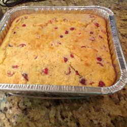 2Stir cranberries with 1 tablespoon of sugar in a bowl. Whisk flour, cornmeal, 1/2 cup sugar, baking powder, baking soda, and salt in a separate bowl. Whisk milk, eggs, and melted butter together in a third bowl. Pour milk mixture into dry ingredients and stir just until moistened. Stir cranberries into batter; pour into prepared baking dish.