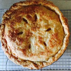 3Place mixture in uncooked bottom shell, sprinkle with lemon juice and top with unbaked pastry. Cut slits in top and sprinkle with second amount of sugar.