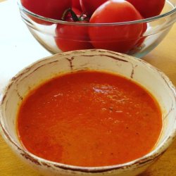 5Melt butter and stir in the flour, cook for 1 minute. Stirring slowly, add the broth/vegetable mixture. Add reserved chopped pepper and bring to boiling. Lower heat and simmer 10 minutes.