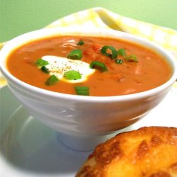 6Ladle into bowls and add 1 tablespoon of sour cream to each bowl. For a lighter soup, this is also delicious without the sour cream.