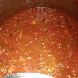 2Brown beef and pork in pot over medium high heat. When meat is browned, stir in the bell pepper, onion, jalapeno peppers, habanero peppers, Anaheim peppers, garlic, cumin, red pepper flakes, chili powder, bouillon, crushed tomatoes, whole tomatoes, beer, tomato paste, chile paste and water.