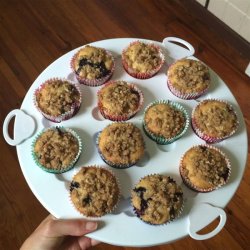3For the crumb topping, mix together the flour, softened butter, cinnamon, and brown sugar. Place a small amount on top of each muffin.
