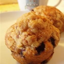 2In a large bowl, mix together the flour, white and brown sugars, salt, and baking powder. Stir in oil, eggs, and milk until well blended and very few lumps remain. Gently fold in blueberries being careful not to mash them. Fill muffin tins 2/3 full, or slightly more for a larger muffin top.