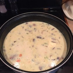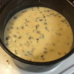 3In the same stock pot over medium heat, saute the celery and onion in the oil for 5 minutes. Add the mushrooms, and cover. Cook for 5 to 10 minutes, stirring occasionally, until everything is tender. Return the broth to the stock pot, and add the partially cooked wild rice. Stir in the bouillon, white pepper and salt; simmer, uncovered, for 15 minutes.