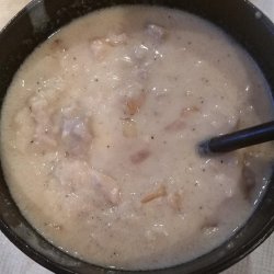5Mix in the reserved chicken meat and the white wine. Allow this to heat through for about 15 minutes.