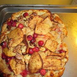4Roll dough onto a lightly floured work surface, forming about an 11-inch circle. Transfer dough to the prepared baking sheet. Arrange apple-cranberry mixture decoratively on the dough, leaving a 2-inch rim of exposed dough. Sprinkle walnuts over apple-cranberry mixture. Fold exposed crust up and over the edge of the fruit.