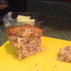 2Combine flour, 1 3/4 cup sugar, baking powder, salt, and baking soda in a large bowl. Add melted butter; stir until mixture is crumbly. Reserve about 1/4 cup cranberries and 1/4 cup mandarin oranges; stir remaining fruit into flour mixture.
