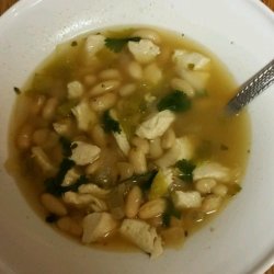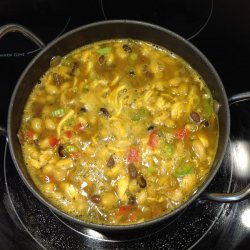 "People who have tasted this thick mix of beans, spices and chicken say: 'So good it'll make you perky and stupid!' I've placed in my workplace's annual Halloween chili cook-off for the last three years. Looks strange -- tastes great! Serve with shredded Monterey Jack cheese and warm flour tortillas."