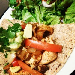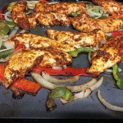 1Combine vegetable oil, chili powder, oregano, garlic, onion, cumin, salt, pepper, and cayenne pepper in a large resealable plastic bag. Add chicken tenders, bell peppers, and onion; shake to mix.