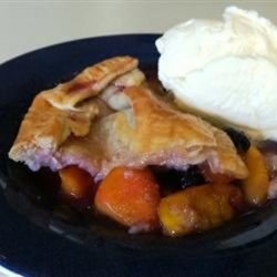 2Toss peach slices and blueberries in a large bowl with lemon juice. Combine sugar, tapioca, and salt in a small bowl; pour over peach mixture and toss to coat. Transfer to prepared pie plate and scatter butter pieces over fruit. Cover pie with remaining crust; press and seal the top and bottom crusts.