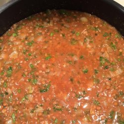 2Add the lentils, sauce and seasoning. Reduce heat to low, cover and simmer for 45 minutes, or until lentils are tender. Salt and pepper to taste.