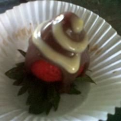 "Absolutely delectable and rich! Strawberries are injected with orange brandy, and dipped in rich dark chocolate. You don't have to put the white stripes on, but it gives a very professional look. Once you make these they won't last long! Takes a little time but its worth it!"