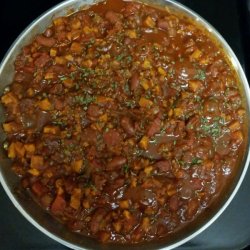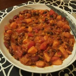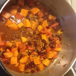 2Bring vegetable broth mixture to a boil, reduce heat to medium, and simmer until sweet potatoes are tender, 20 to 25 minutes. Stir tomatoes and kidney beans into sweet potato mixture and simmer over low heat until flavors have blended, about 45 minutes.