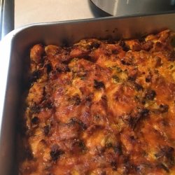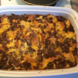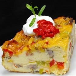 "This strata is really easy to make. Put it together the day before, then just remove from the refrigerator and bake. Ham or bacon can be substituted for the sausage. Sometimes I add cooked chopped broccoli for a change of pace."