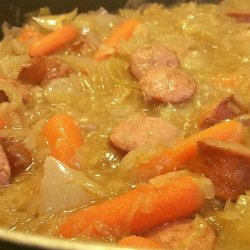 2Cover, reduce heat to low, and simmer for 1 hour, adding up to 1/2 cup of water if necessary to prevent sticking. Remove cover and increase heat to medium for at least 15 minutes, or until most of the juice cooks down, and the sauerkraut glistens.