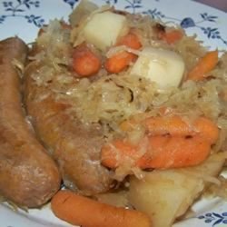 1Melt the butter in a large skillet or Dutch oven over medium heat. Saute onions in butter until translucent. Stir in the sauerkraut and cola.