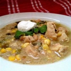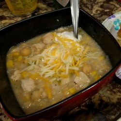 1Heat olive oil in a large saucepan over medium heat; cook and stir onion, jalapeno, and garlic until onion is tender, about 5 minutes. Add chicken broth, Great Northern beans, garbanzo beans, corn, green chiles, cilantro, lime juice, cumin, and black pepper; bring to a boil. Reduce heat to medium-low and stir chicken into broth. Cover and simmer chili for 45 minutes, stirring occasionally.