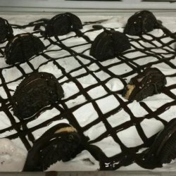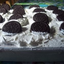 1Soften ice cream. Crush cookies by placing them in a large zip lock bag and rolling over them with a rolling pin. Mix softened ice cream and crushed cookies together. Fold in the whipped topping and pour into one 9x13 inch glass pan. Freeze for 2 hours then serve.